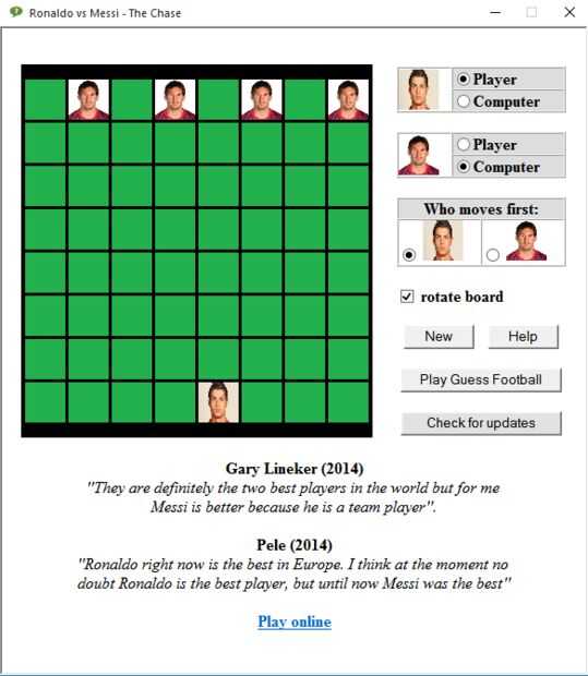 Ronaldo vs Messi [The Chase] es un increíble juego de mente PC creado con HTML, BATCH y JS. Descargar la versión para PC o jugar online