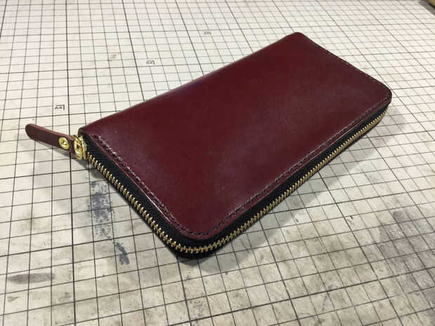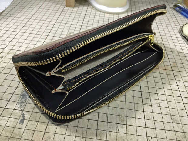"redondo de cremallera cartera con el patrón" está utilizando máquina costura y coser a mano.