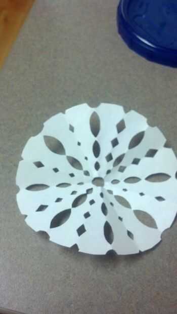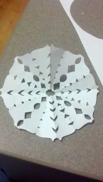 Después de haber cortado todos los diseños, cuidadosamente despliegan su copo de nieve pliegue por pliegue para que no rasgue y YAY los copos de nieve.