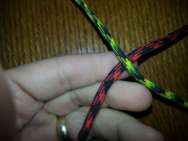 Ahora vas a ejecutar las cuerdas perpendicular uno al otro - perpendiculares, intersección de 4 vías - sin embargo usted desea describir. Una vez esto logrado, apriete los cables entre el dedo y el pulgar y dale la vuelta.
