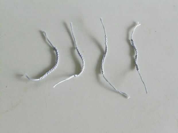 Con seda del bordado, dedo del ganchillo 15 puntadas de ganchillo único. Hacer esto 4 veces. Estos son los lazos de las horquillas. Pegamento a la parte interior del sombrero, 2 en cada lado. Deje 1/4" de lazo sobresalga por debajo de la venda del sombrero.