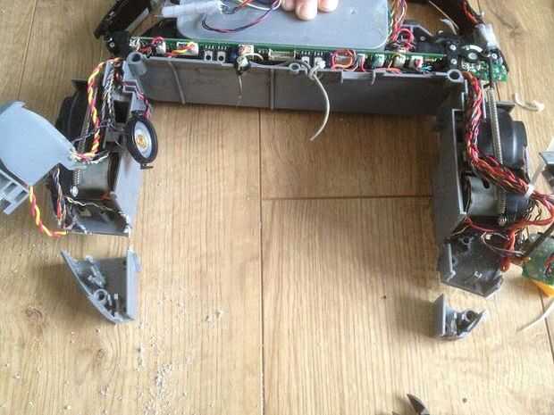 Pudimos desconectar el panel de control de la Roomba y mayoría de los sensores pero no los 4 sensores IR en el parachoques. Sin dichos sensores, la Roomba es sólo un ladrillo de lujo.