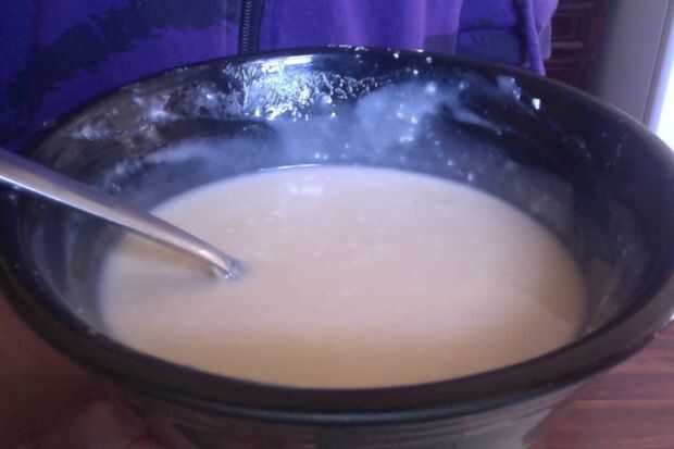 1 taza de cerveza de raíz (o 1 taza de agua y 1 cucharadita de cerveza de raíz extracto) (esto puede reemplazarse por soda de crema)