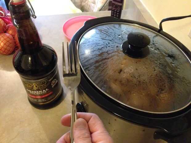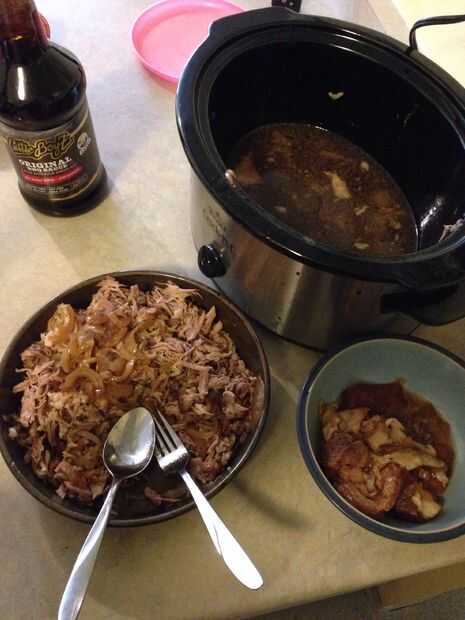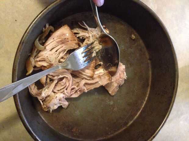 Poner la carne de cerdo desmenuzado a la olla.