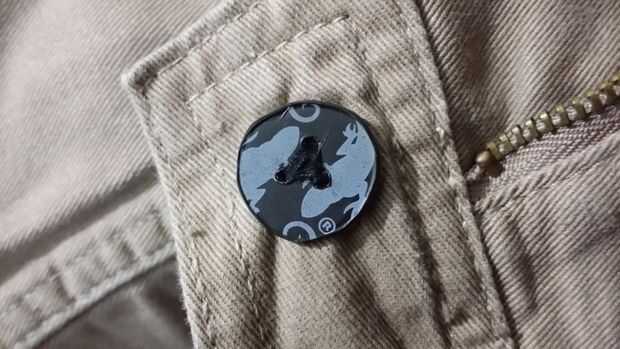 Muy bien! Su hecho ¡ Enhorabuena! Coser en y usted tiene usted mismo un reemplazo botón reciclado de lo que otros sabios sería basura. Sentimos orgullosos. Tu ayudando a la madre naturaleza y manteniendo los pantalones todos al mismo tiempo.