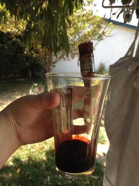 Sangre - falso, preferiblemente - disponible en las tiendas de halloween, o en línea (jarra de sangre, no tubo) Ropa - trate de usar algo no usas ya, para no comprar algo nuevo Tijeras - rasgar y cortar y rasgar según sea necesario Taza Almacén del dólar pincel - 2"- Suspensión si fuera necesario