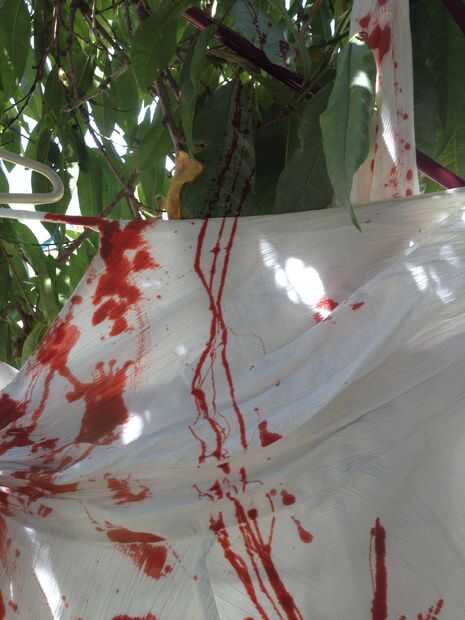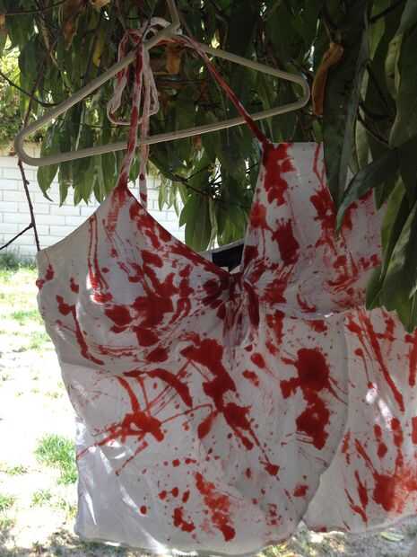 Quieres venir a la camisa de diferentes distancias. Impacto no se produce siempre desde el mismo punto. (Patrones de sangre varían.)