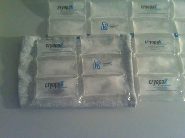 Ir a buscar tu cryopak congelado del congelador. Utilice la bolsa o regla para medir el cryopak congelado. Corte a lo largo de los bordes sellados de la cryopak asegurándose de no cortar las "burbujas".