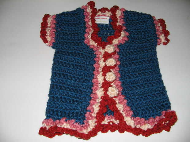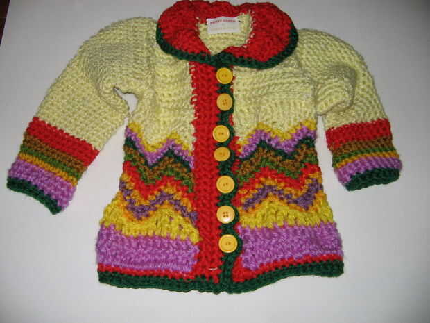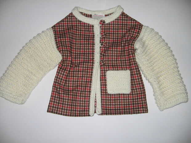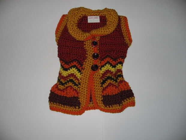 estos son diseños originales, los chalecos son de ganchillo con hilo de manta de acrílico, un abrigo con un hilado de acrílico de 4 capas con un fondo de tela y el otro tiene 4 capas de hilado de acrílico con mangas de ganchillo y recorte y tela frente y parte posterior, suéter está tejido a ganchillo con hilo de manta de acrílico. Hay que mantener las manos ocupadas o llenaría mi boca con dulces en su lugar.