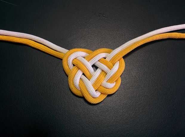 La Fundación de este collar comienza atando un nudo celta de corazón, que es un nudo muy popular y simple que un principiante como yo sólo puede utilizar, pero al mismo tiempo se ve impresionante también. Para hacer este nudo mejor seguir las imágenes arriba (lo sentimos cerca de una escala de grises pic) algo para poner el proceso de fabricación en palabras.