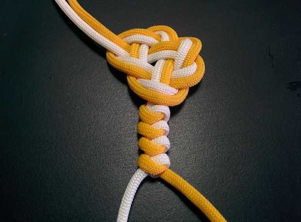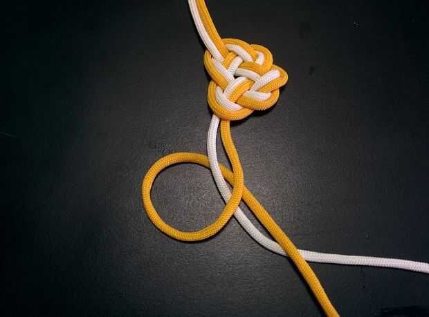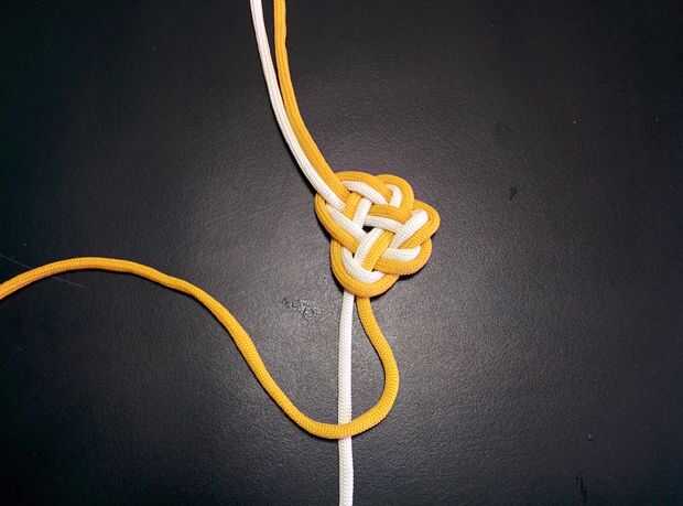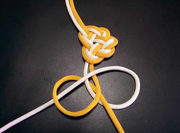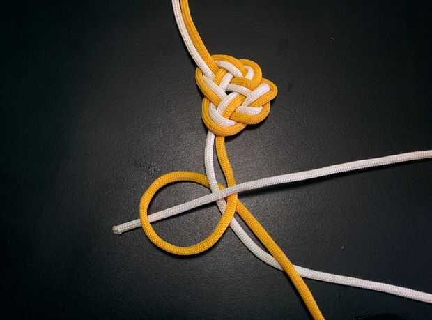 - Tire y ajuste los cables cuidadosamente para formar el nudo. Este es el primer nudo de serpiente.
