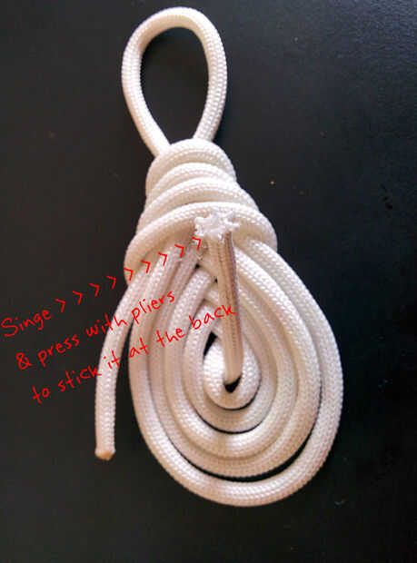 - Corte el cordón cerca del nudo y chamuscar con mucho cuidado, puede quemar las otras cuerdas.