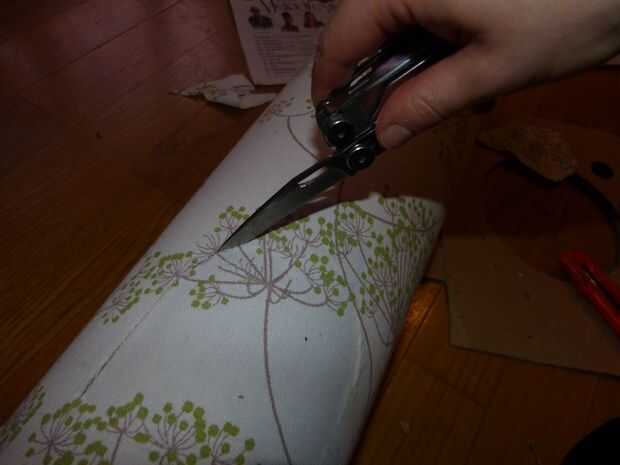 SÓLO corte la abertura superior y pegar los bordes de la tela en el tubo.