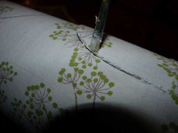4. cepillo una capa delgada de pegamento sobre los bordes de corte de la tela, para evitar que los hilos se rasgue.