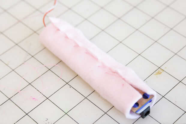 Envuelva el fieltro alrededor de los circuitos y coser la costura con puntada de lo que funciona mejor.