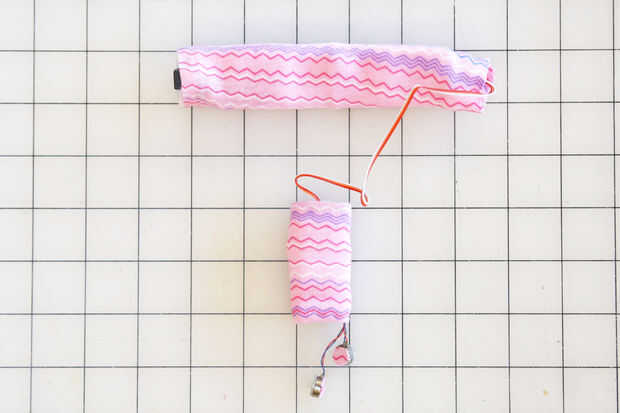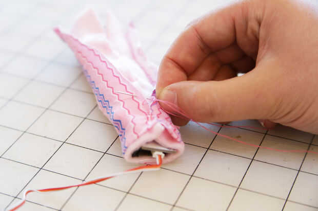 A continuación, envuelva a la tela decorativa en el fieltro y coser esta costura juntos así.
