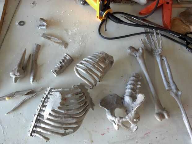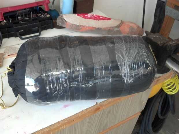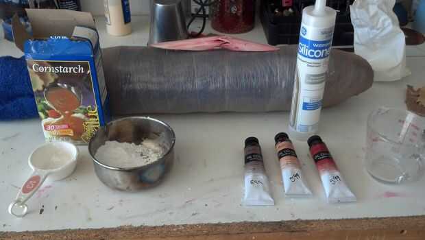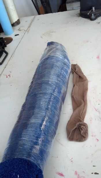 Formularios para miembros hicieron rodando encima de toallas viejas y envolviéndolos con el abrigo del estiramiento para que la silicona no se pegue a las toallas. Saco de dormir fue utilizado como una forma para el pecho la herida.