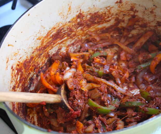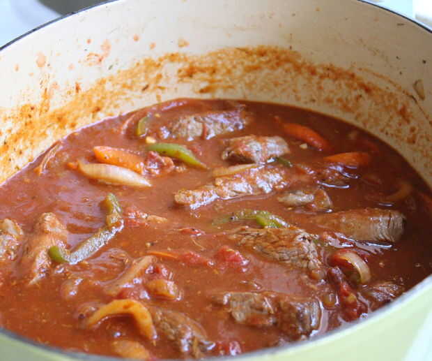 Vas a esto a fuego lento hasta que la carne es agradable y tierna - 2-3 horas.