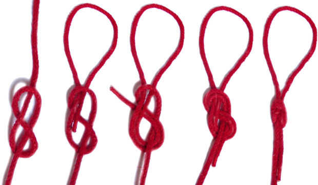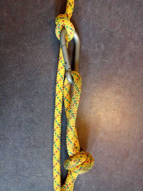 Para conectar los mosquetones hacemos un nudo doble ocho en el extremo de la cuerda. El nudo doble ocho es uno de los nudos más simples para formar un bucle en la cuerda.