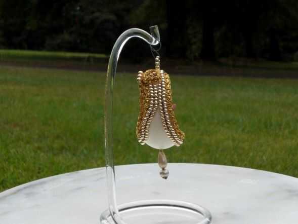 esto es un huevo real que tuvo muchas muchas horas para decorar. El huevo más grande de exterior tiene un pequeño huevo en su interior. Un cisne de cristal se encuentra en el huevo más pequeño. Hay muchos recortes detallados, apliques, cables metálic