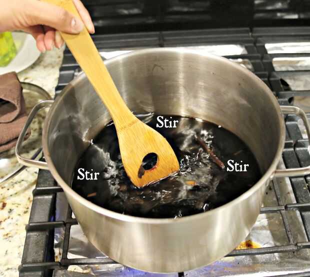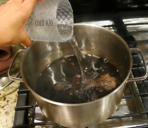 Después de 30 minutos, añadir en 12oz de agua fría. Agitar vigorosamente durante 5 minutos.