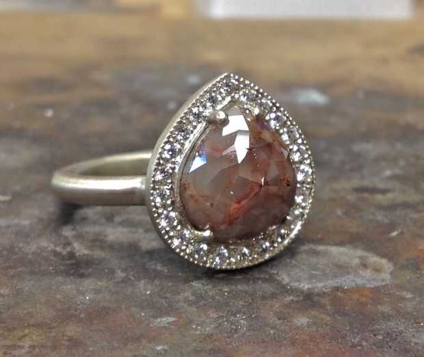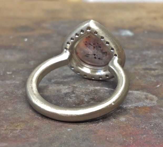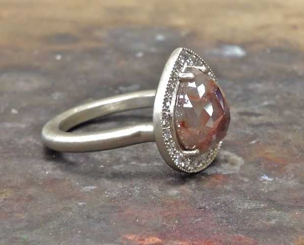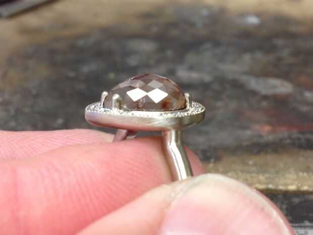 En general que estaba muy contento con cómo resultó este anillo. Tiene una muy buena calidad sutil - es aún brillante pero no demasiado llamativo y diamante crudo del corte de la rosa tiene una mirada verdadera tierra a él.