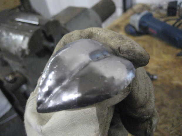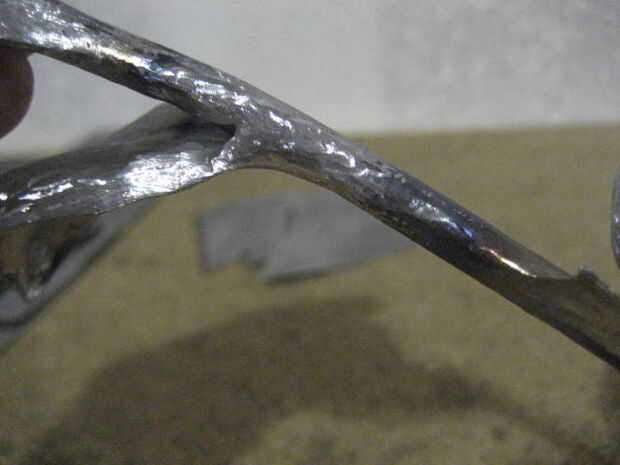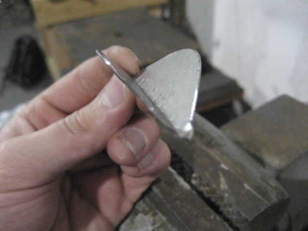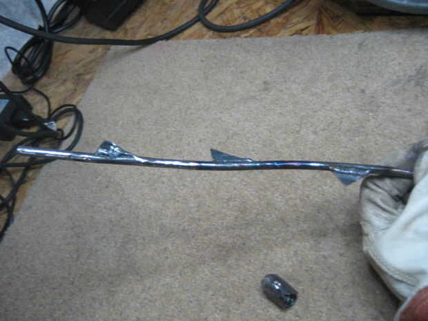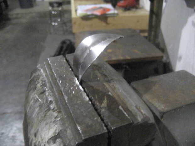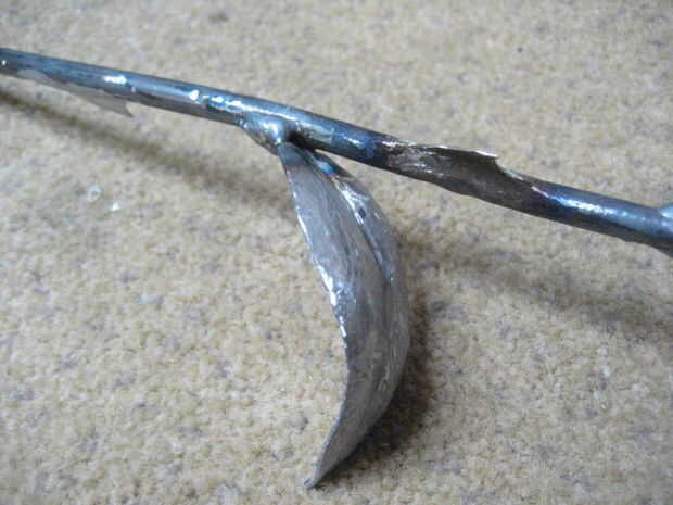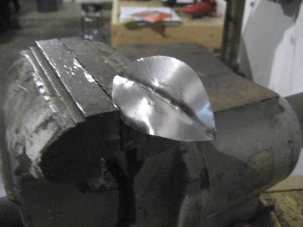 Para hacer el tallo, tome la barra de acción, martíllelo y doblarla para que no sea perfectamente recto o liso. Esto hace que se vea menos como un bar y más de cerca se asemeja a un tallo verdadero se levantó. Luego tomar las piezas triangulares formado por las espinas y soldar en los lugares deseados. Después se sueldan con autógena, afile los cordones de soldadura y utilice el molinillo (o lijadora, o archivo o herramienta Dremel) y forma el triángulo en una espina puntiaguda. Después de haber unido y formado de las espinas, es hora de pasar a las hojas. Las hojas se forman doblando la forma de la elipse a lo largo de su eje en forma de V. Luego doblar los bordes, así que comienza a parecerse a un par de labios de cera. Después de que se hace, se doblan las hojas a lo largo del centro para darles una forma curva natural. Esto es difícil de hacer. Lo hizo poniendo la pieza en un tornillo de banco (canto por un lado, 'labios' en el otro) martillado hacia el lado de la cresta, abrió la prensa, deslizarse para arriba un poco, cierra el tornillo de banco y martillado otra vez. Hacer esto un par de veces y que tendrá la forma deseada. Después de haber terminado las hojas, solo soldar sobre el vástago y moler a las soldaduras.