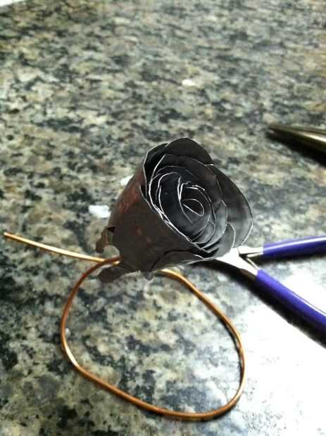 Luego mueva la pieza #5 y otra vez sus alicates de punta larga para comenzar a formar los pedales color de rosa, pero éste no Haz formado tan bien.