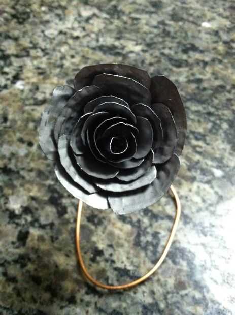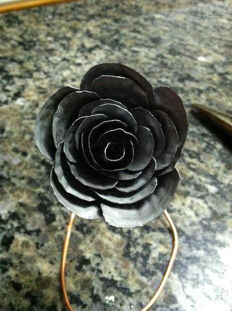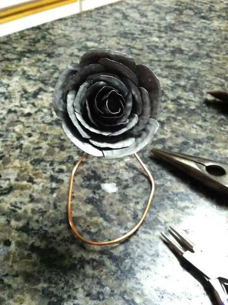 Ahora para la parte más difícil. Usted tiene la parte principal de la rosa formada pero no se ve muy bien EH. A partir del #5 pieza tienes que agarrar solo las puntas de cada pedal y siempre tan cuidadosamente empezar doblando hacia fuera. He encontrado que donde se superponen los pedales lo mejor es tratar de agarrar ambos pedales con sus pinzas y doblar al mismo tiempo, este mantiene juntos mejor. Procurar que mantener la forma redondeada al estar inclinado hacia fuera. Continúe haciendo esto con piezas #4 a #2 una vez finalizado, tendrá que aplastar la base exterior de la rosa para conseguir un poco más y ajustar pedales individuales según sea necesario.