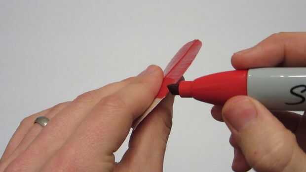 Para formar los pétalos, comienza por cortar un trozo de alambre sobre un pie de largo y un pedazo de cinta roja alrededor de 4 pulgadas de largo. Pegar el cable con la cinta americana para que se superpongan aproximadamente 1/3 de la longitud de la cinta. Luego doblar la cinta adhesiva sobre el extremo del alambre y pegan los dos lados. Esto formará la estructura básica del pétalo. Cortar el pétalo a forma por recortar los lados y redondeo final. Si no desea que el pegamento blanco para mostrar, utilice el marcador para el color en los bordes de corte. Repita este proceso para un total de diez pétalos. Usted querrá hacer una variedad de tamaños. En una rosa real, los pétalos internos son más pequeños que los pétalos exteriores. Copia de esa estructura le ayuda a conseguir la forma correcta.