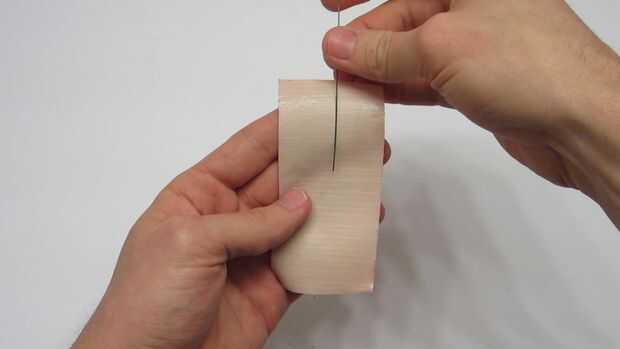 lo que necesitarás:Una paja, cinta adhesiva y un cuchillo tijeras o x-actoPaso 1: Cortar una tira de Corte una tira de cinta de 2 pulgadas de largo.Paso 2: doblar Doble en las esquinas.Paso 3: envolver Abrigo alrededor de la paja.Paso 4: continuarCon