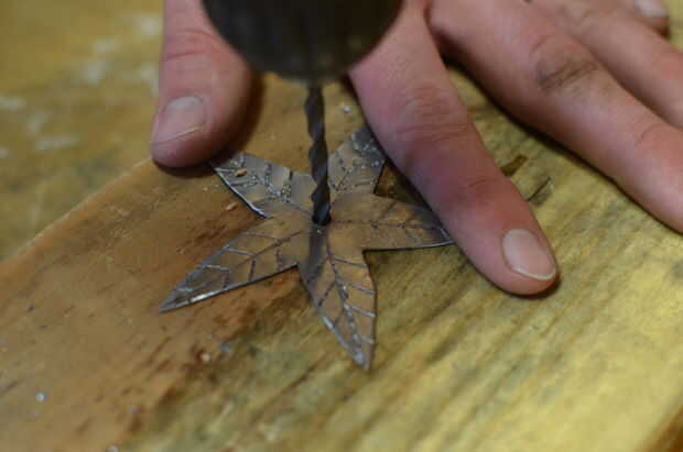 Nota: Perdón por posando sin equipo de seguridad apropiado en estas fotos pero por favor, recuerde usar guantes cuando corte los pétalos y ajustar la pieza al perforar el agujero en el centro de ellos.