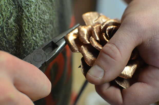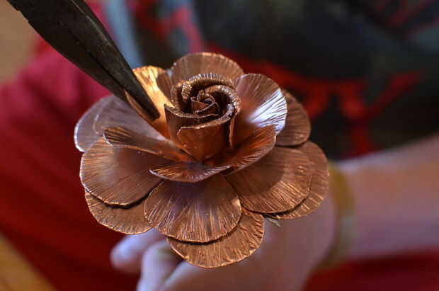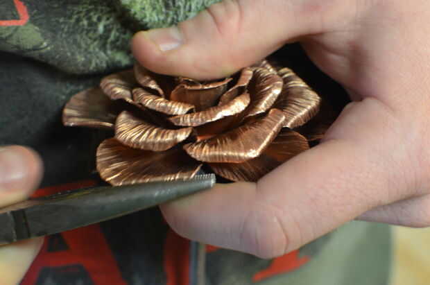 También, en los niveles cuarto y quinto, alicate su regular cada pétalo 1/2" en desde el borde superior del gancho agarrador y doblar hacia fuera en un arco para que los pétalos no destacan recto desde su base. Esto le da a la rosa más volumen por lo que no es plana en la parte superior.