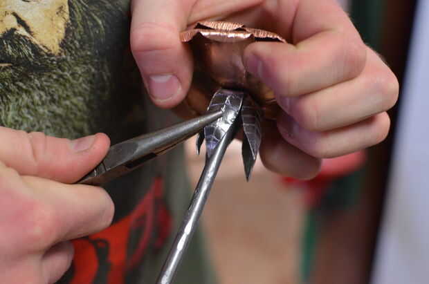 mi proyecto en clase de metales en el colegio, el otoño de 2012. Tarea consistía en incorporar una escultura de cobre y acero. Esto no es un proyecto de casa DIY, a menos que tenga acceso a herramientas especializadas como yunques, soldadoras mig, co