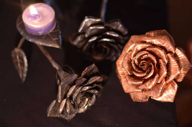 Si te sientes realmente lujo, puede cortar algunas hojas el resto del metal de hoja y soldar el vástago sin embargo te gusta. Si realiza al menos una hoja un poco más grande y plana, usted puede hacer su se levantó en un Portavelas muy dulce.