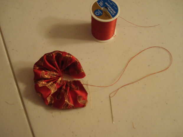 Coloque la yema apretada en el más flojo y coserlas juntas.