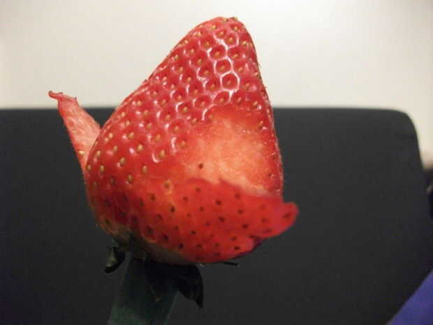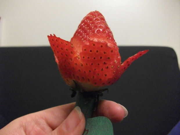 Como tirar el cuchillo hacia arriba, tire de la hoja hacia usted, que se encrespa el pétalo. Pueden necesitar recurling como manejas la baya, pero todavía quiere fomentar el rizo cortar.