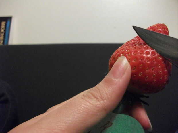 A medio camino encima de la fresa, hacer un corte superficial en la baya de ángulo ligeramente en. Si se divide el lugar donde empezar a cortar en la parte inferior de la baya en tercios, desea reducir de dos tercios.