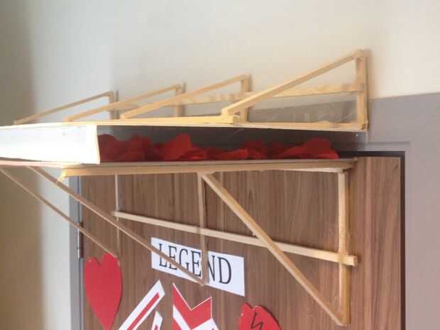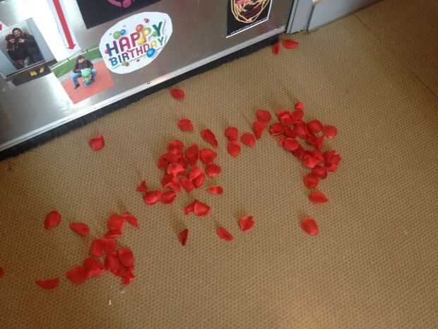 Una buena sorpresa para tu novia. Cuando ella abre la puerta, rosa hojas caerán por ella :)