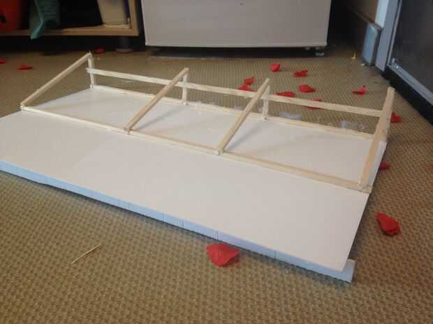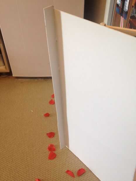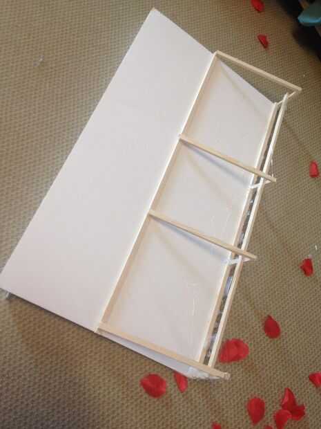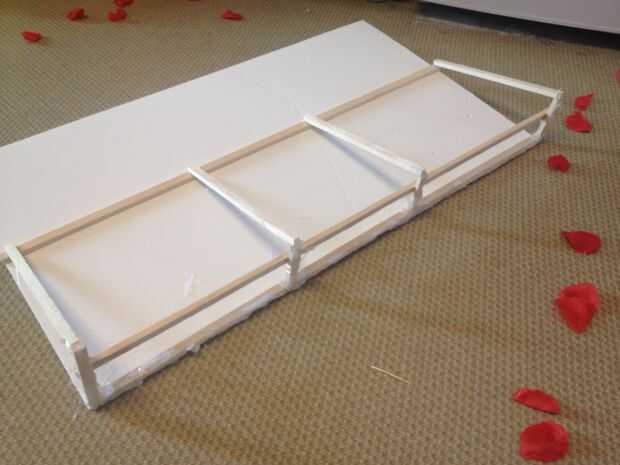 Como una parte superior preparamos cubierta. Esta funda hará que las rosas cuando ella entra en la habitación. Como en el paso anterior, cortar el cartón en las mismas dimensiones de la base y fije los soportes triangulares en este momento apoyo el tamaño puede ser más pequeño entonces base.