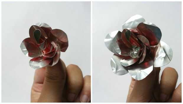 Como la anterior, se tiene que recorte los pétalos y la flor y hacer agujero en ellos.