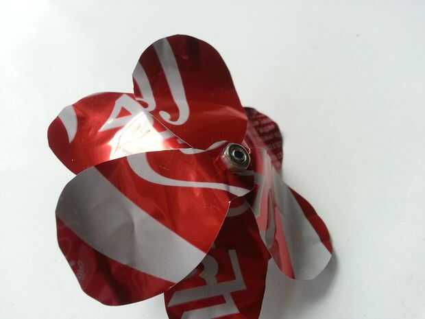 Tome el tornillo e insertar las formas 2-pétalos de la flor a través de ella, véase el cuadro 3 de este paso. Doblar para arriba uno por uno y apriete hacia el centro.