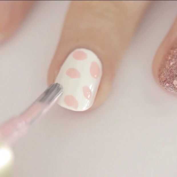 Se pintar este clavo con leopardo rosa impresión. Formas de nube rosa un poco de luz de diferentes tamaños en la cima de su capa blanca de pintura.