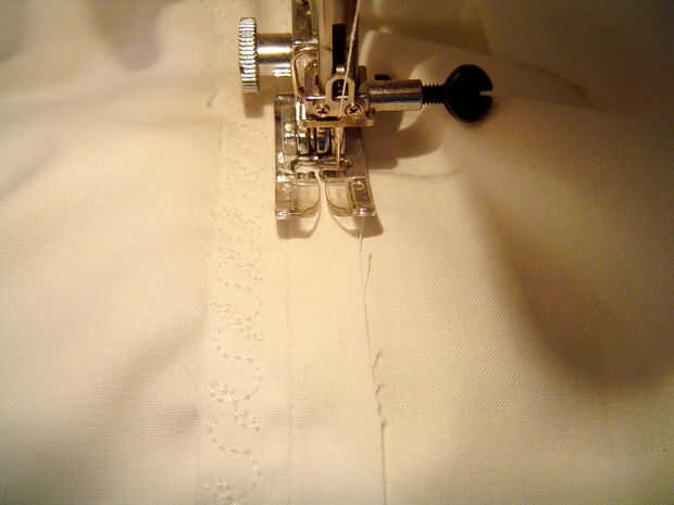 Marca los dardos en la tela.  Coser los dardos.  Planchar hacia el centro o hacia abajo.  Lugar parte delantera y trasera Vestido de forro derecho contra derecho y cosen las costuras laterales y los hombros.  Pulse abrir y terminar las costuras zig-zag o otra puntada decorativa.
