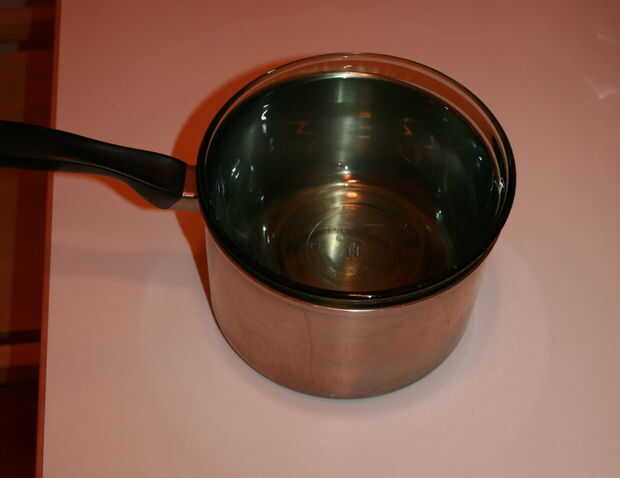 -un recipiente (preferiblemente de vidrio) que es un poco demasiado grande para caber a la olla para que cuando descansa dentro de la olla hay por lo menos 3 pulgadas entre la parte inferior de la taza y la de la olla