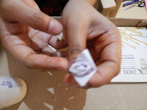 • Tomar a un chit de pequeño papel para la base de la flor.