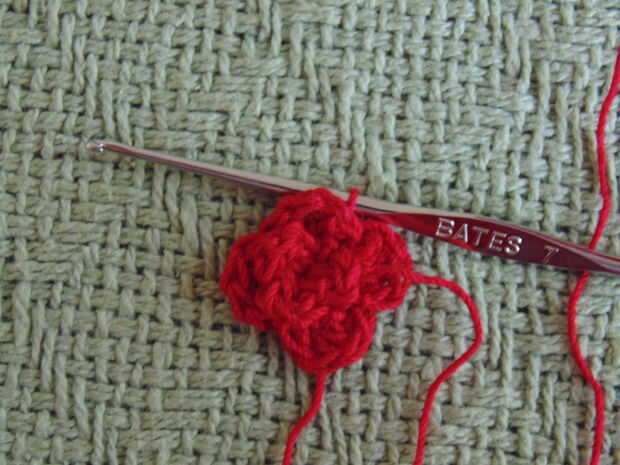 En la Sp Ch * Dc 4 y sl st en la anterior sl st * 3 repetir más veces (4 pétalos)