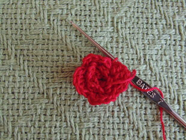 Busca en la parte posterior de su rosa otra vez Sl st en medio del primer pétalo