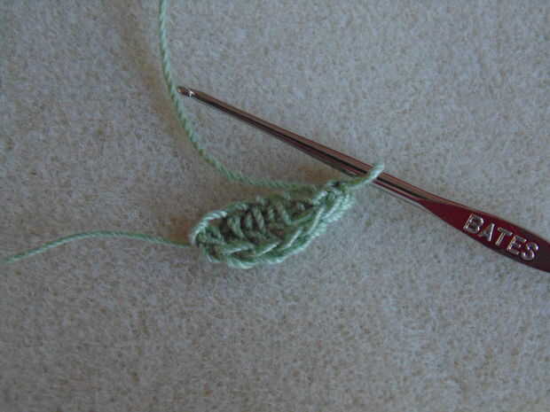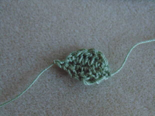 En el segundo ch gancho sc, hdc, dc en próximo 2, hdc, 2 sc en el siguiente.