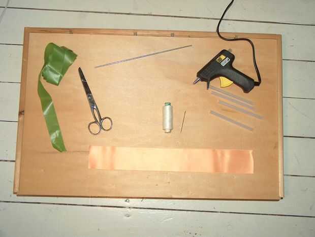 Esto es una especie de goma elástica cinta verde, probablemente usted puede conseguir en cualquier Floreria. Necesita unos 30 cm por rose.
